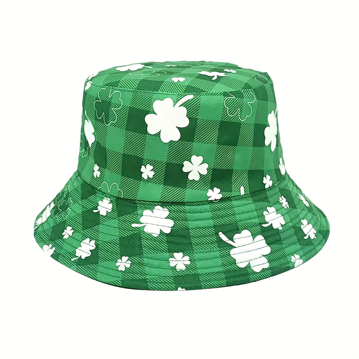 TEMU 네잎 클로버 패턴 프린트 낚시꾼 모자 1개, 유럽 및 미국 스타일의 세련되고 다용도, 성 패트릭 데이를 위한 자외선 차단, 남녀공용 리버서블 버킷 모자. 할로윈, 크리스마스 이벤트 및 파티 용품|벙거지모자