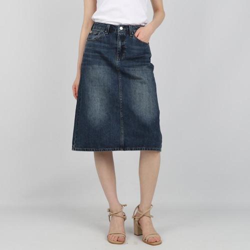 게스 여성 청치마 앞트임 롱 스커트 미디엄블루 YO2D6578