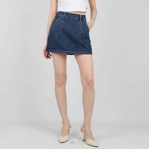 [게스]게스 여성 청치마 핀턱 데님 스커트 미디엄블루 YO2D0551