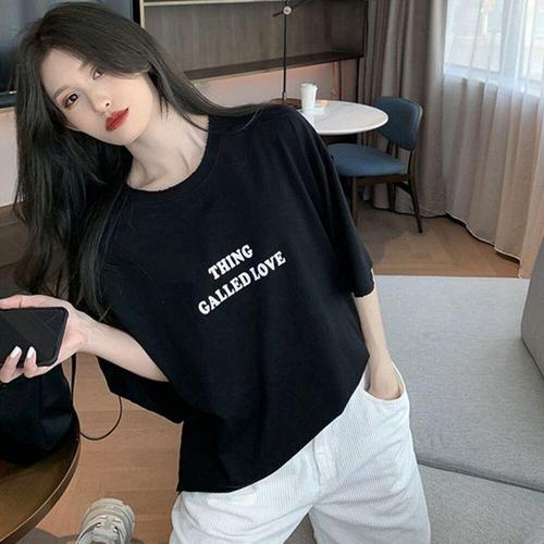 [OFL6P2N3]여자 여름 레터링 라운드 반팔 캐주얼 티셔츠
