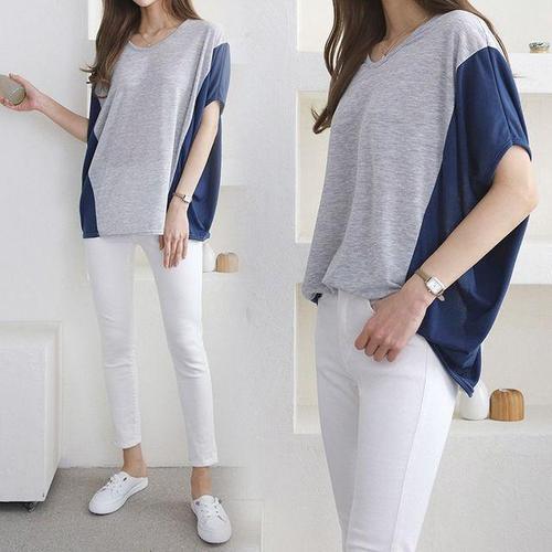 [OFK2P857]빅사이즈 모닝배색가오리롱반팔 오버핏