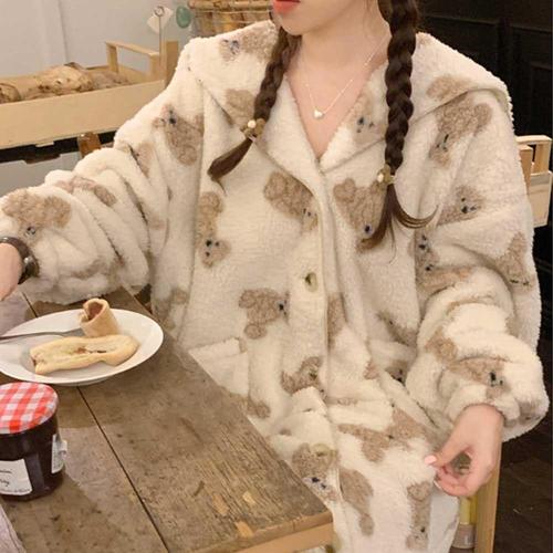 [셀럽하우스]여자 QQKC4799 룩 가운 겨울 여행 로브 극세사 롱 잠옷 코디