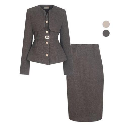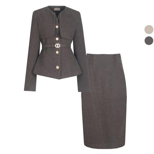 [비비드시크릿가너]SET 여성 누아 케이프 겨울 정장 울자켓+스커트 세트