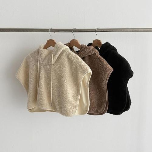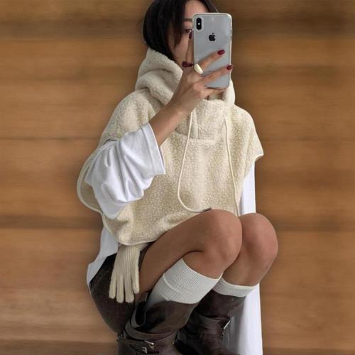 [옷자락]여성 양털 후드 크롭 숄 조끼 겨울용