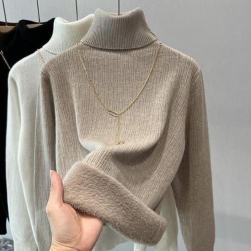 [엄지척]여성 목폴라 한파 겨울 심플 두꺼운 보온 기모니트_19679483_667501