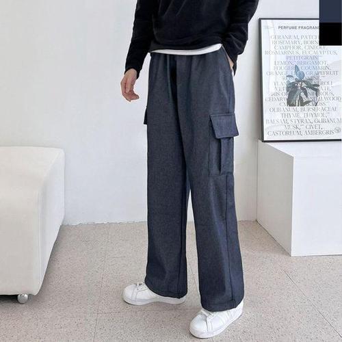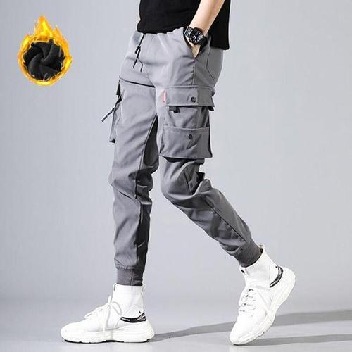 JUSTFEELING 1+1 기모 남성 카고 바지 멀티 포켓 조거 팬츠 겨울바지 빅사이즈 캐주얼 와이드 밴딩 긴바지 트레이닝바지 D10U