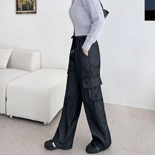 [옷자락] 여성 겨울 기모 밴딩 일자핏 골덴 카고팬츠