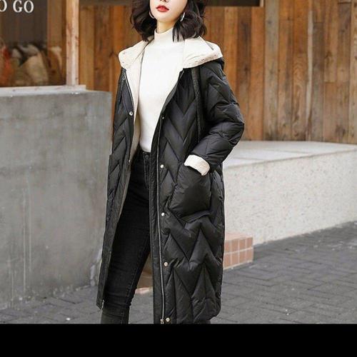 AOKADA 중년 여성 후드 집업 오리털 경량 닥 다운 롱 패딩