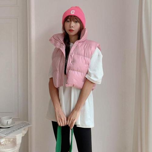 [다잇템]여자 그런지 폴라넥 핑크 경량 탱크 패딩조끼 (12443297A)
