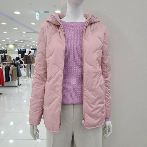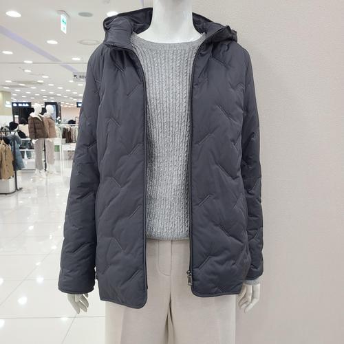 지오다노 여성 일자 퀼팅 후드 집업 경량 다운 패딩 자켓 375911