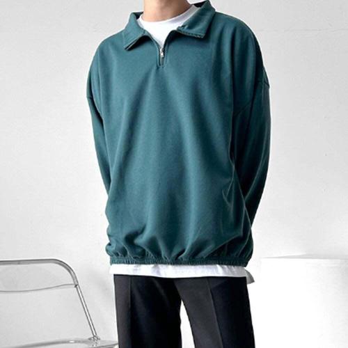 [셀럽하우스]면 BQAT4171 남성 고등학생 초록반집업 캐주얼 데일리 맨투맨