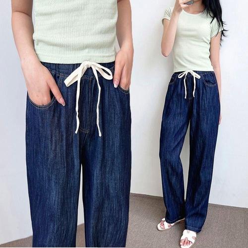 [다잇템]여자 여름데님 코튼 고무줄 와이드핏 청바지