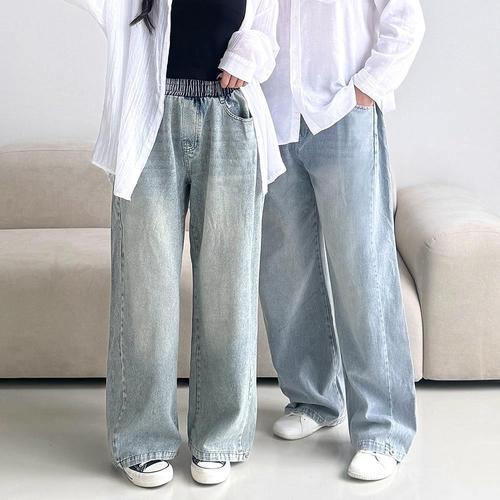[다잇템]여자 워싱 그런지 남자 넓은 진 고무줄 청바지