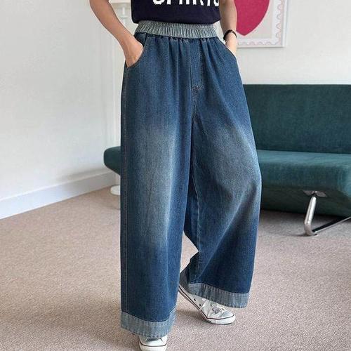 [다잇템_패션]여자 FW MAXI 고무줄 워싱 넓은 그런지 청바지