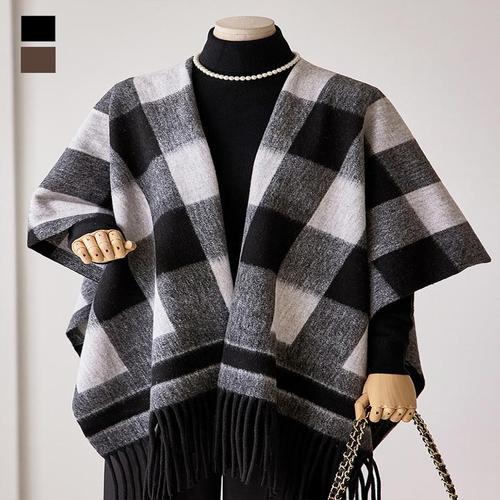 [커스텀에이블]고방 체크 프린지 숄 가디건_T2510CD609C