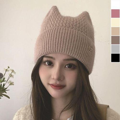 [에이치플러스몰]고양이귀 니트 비니 1P 겨울 보온 데일리 패션 모자