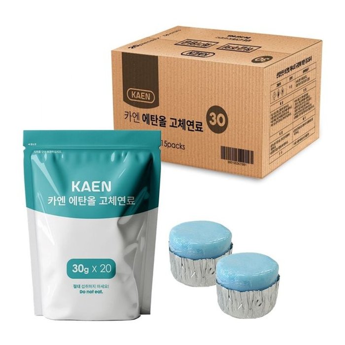 카엔 프리미엄 고체연료 1팩 (30g x 20개) 미니화로 불쏘시개 고형 메탄올 착화제