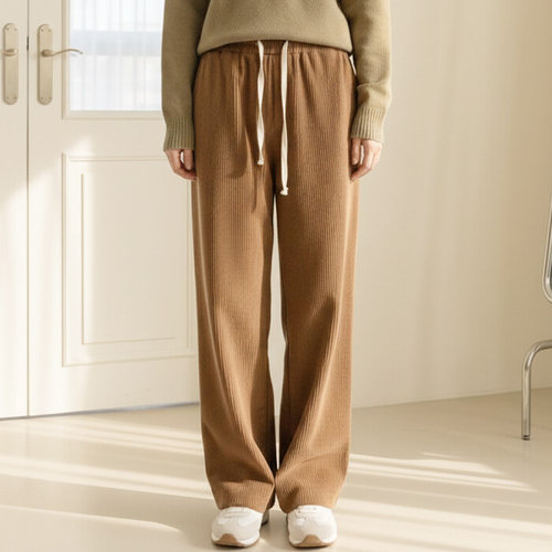 인디오 1+1 여성용 밴딩 밍크기모 골덴 통바지 와이드팬츠 NSE1003