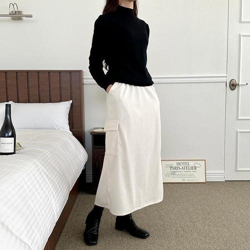 모던한 양포켓 도톰한 골덴 카고 밑트임 롱 스커트