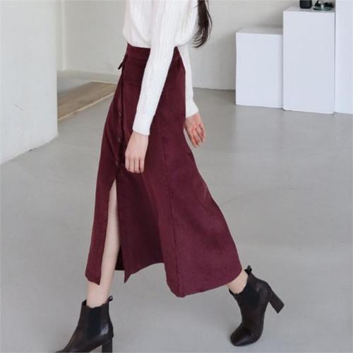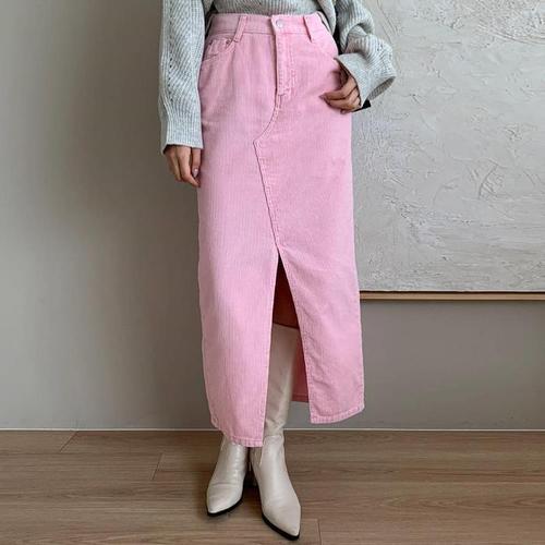 [다잇템]여자 긴치마 클래식 골덴 슬릿 분홍 치마 (11238130A)
