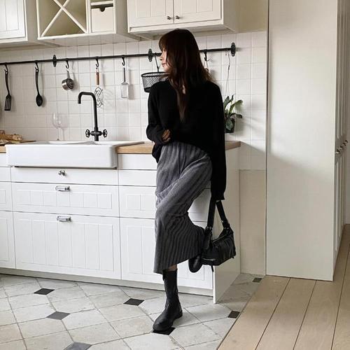 주발이네 봄 빅사이즈 롱스커트 청 밴딩 플레어 미디 니트 랩 기모 H라인 골덴 머메이드 면 A라인 겨울