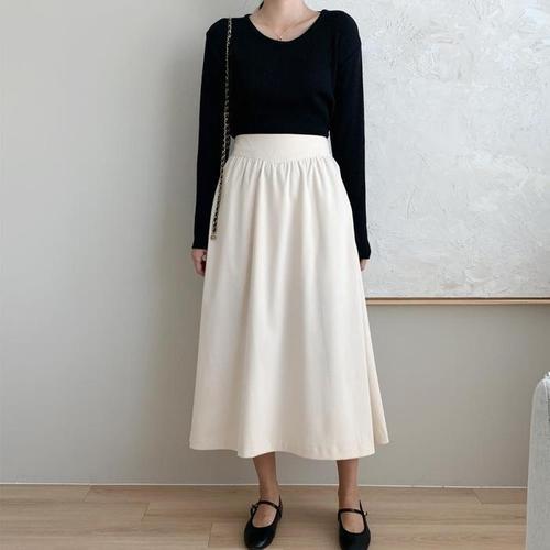 ONM 롱 허리밴딩 스커트 편한 골덴치마 여자 3색 슬림핏