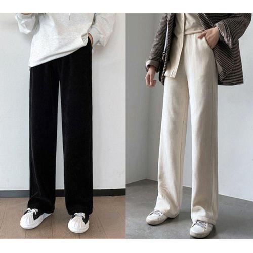 겨울 따뜻한 여성 기모 골덴 벨벳 와이드 팬츠 바지 WE205C1