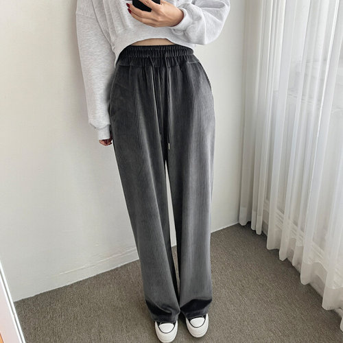 POMTOR 여성 코듀로이 바지 캐주얼 와이드 팬츠 골덴통바지