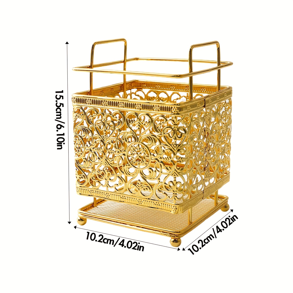 TEMU INS 스타일의 블랙 앤 골드 사각 속이 빈 디자인 메탈 펜 홀더, 주방용품 보관 버킷, 커피 캡슐 정리함으로, 사무실, 서재, 주방의 다기능 데스크탑 수납에 적합합니다.