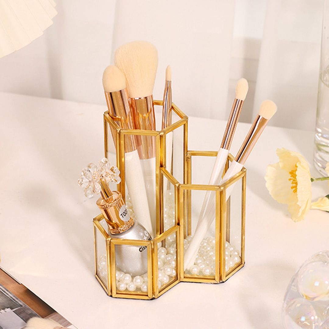 골드육각3구 브러쉬 꽂이 연필 홀더 정리 보관 메이크업 화장품 정리 수납 보관함