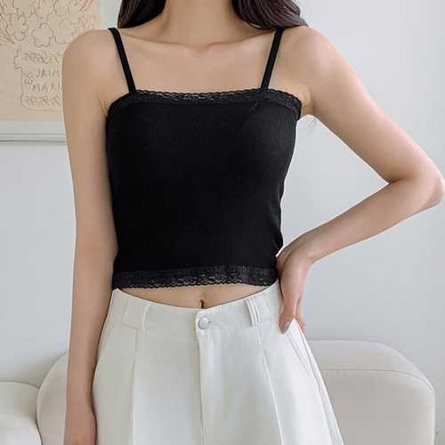 레이스 골지 끈나시 이너티 나시탑 크롭티 튜브탑 민소매 기본
