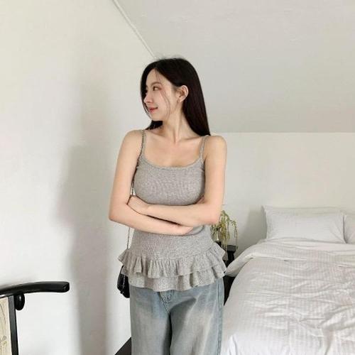 [다잇템][다잇템] 여성 슬리브리스 티어드 프릴 골지 끈나시_21956145_588872