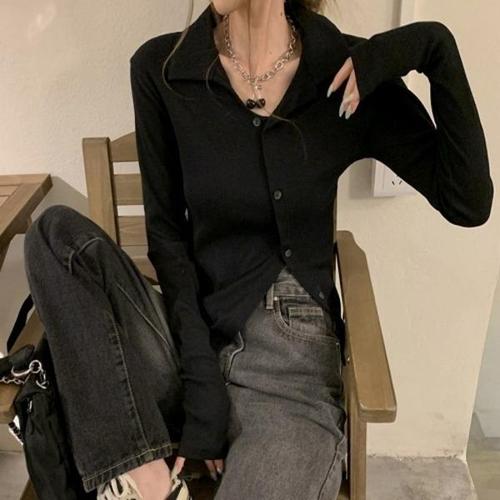 [엄지척]슬림핏 버튼 골지 니트 여성 가디건 언발 날씬 카라_19805881_667501