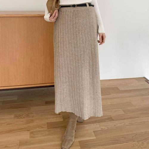 [옷자락]여자 클래식 세로 골지 벨티드 니트 롱 스커트