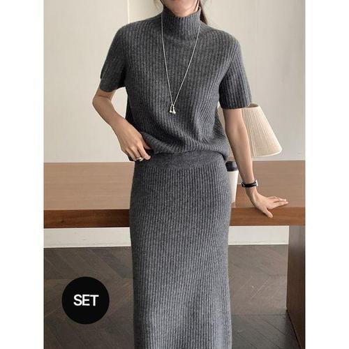 [바네사빈] 도톰 골지니트 니트스커트 set v00101