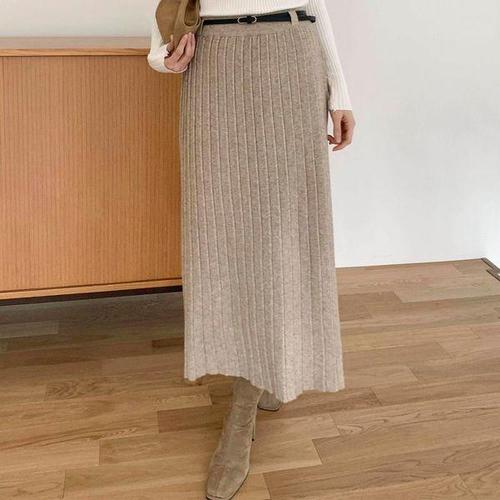 [옷자락] 여자 클래식 세로 골지 벨티드 니트 롱 스커트