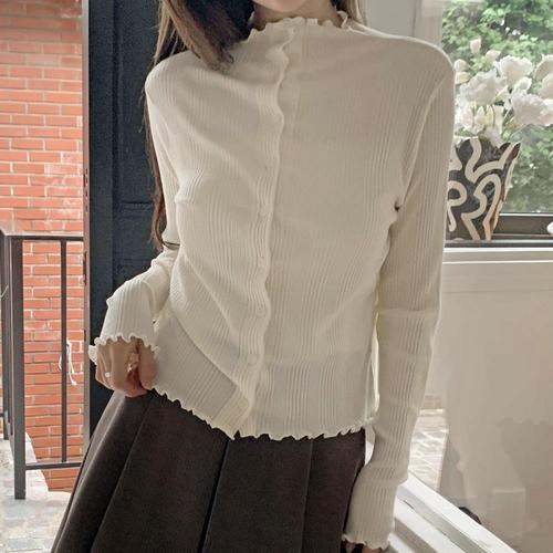 여성 헨리넥 버튼 슬림핏 골지 티셔츠 롱슬리브