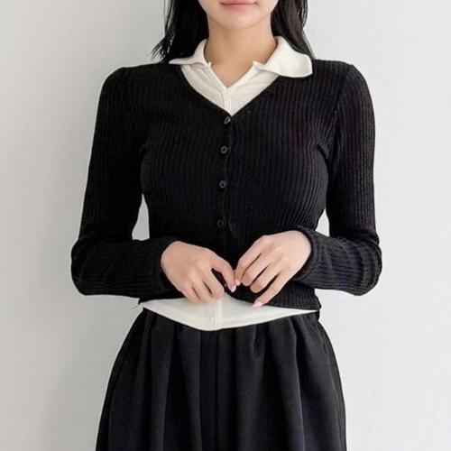 [다잇템][다잇템] 여성 코디 슬림핏 카라 롱슬리브 골지 가디건_23607018_588872
