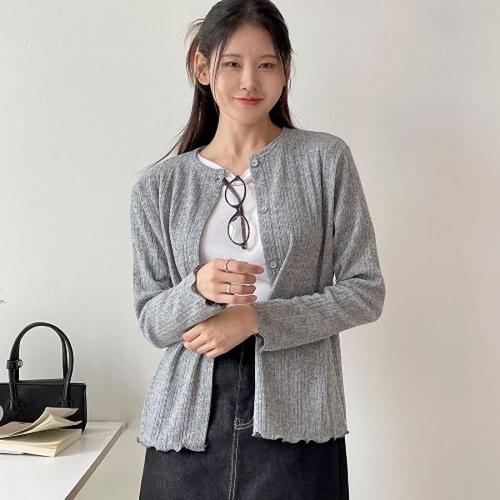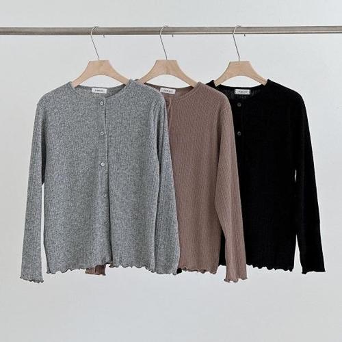 [다잇템][다잇템] 여성 웨이브 부드러운 롱슬리브 코튼 골지 단추 가디건_23387145_588872