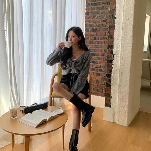 [다잇템][다잇템] 여성 드로우코드 롱슬리브 골지 슬릿 키치무드 숏가디건 티셔츠_23328828_588872