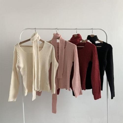 보트넥 여리핏 언발 오프숄더 골지 니트롱슬리브