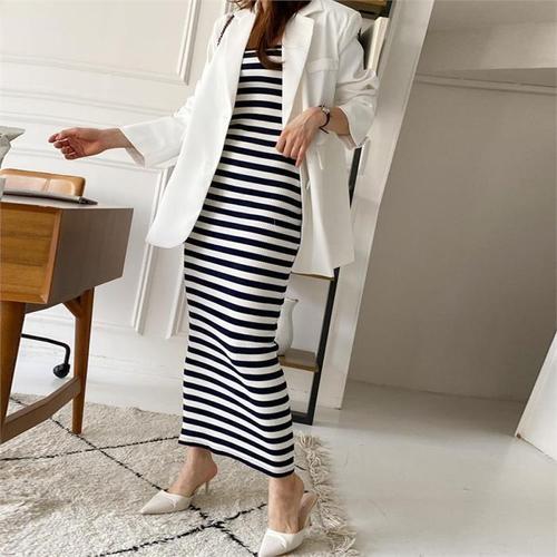 [옷은날개] 슬림니트 롱원피스 니트 골지 나시 골지원피스 2컬러