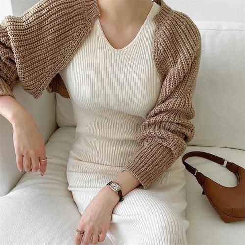 [다잇템]여자 스웨터 롱슬리브 골지 쁘띠 슬림핏 원피스 (11149076A)