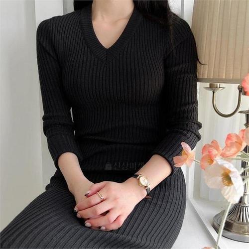 [다잇템]여자 FW 골지 롱슬리브 내의 V넥 슬림핏 니트 (11000701A)
