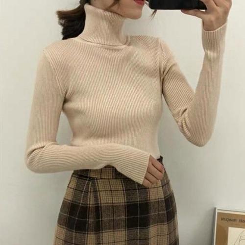 여성 겨울 하이넥 목폴라 긴팔 골지 터틀넥 폴라 티셔츠
