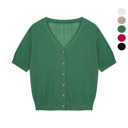 [머스트비]여성 심플 브이넥 골지 반팔 가디건