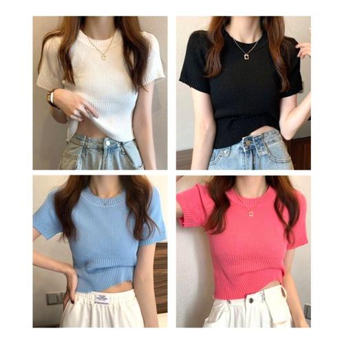 [셀러허브_여성트랜드패션]여자 슬림핏 날씬해보이는 반팔 티셔츠 크롭티 골지