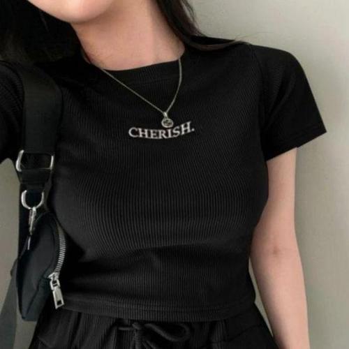 [셀러허브_여성트랜드패션]여자 날씬해보이는 골지 슬림핏 크롭티 반팔 티셔츠