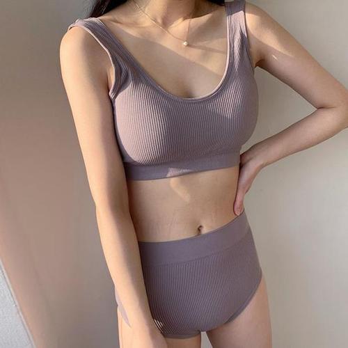 [다잇템]여자 노와이어 골지 7컬러 브라렛 속옷 세트