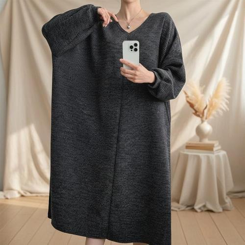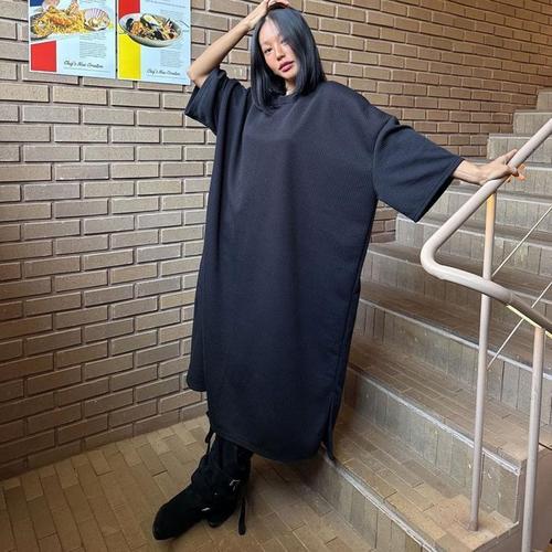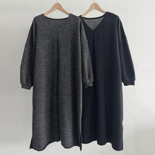 [신상오픈런]여성 심플 빅사이즈 골지 롱원피스 팔뚝트임 홈웨어 (45899404)